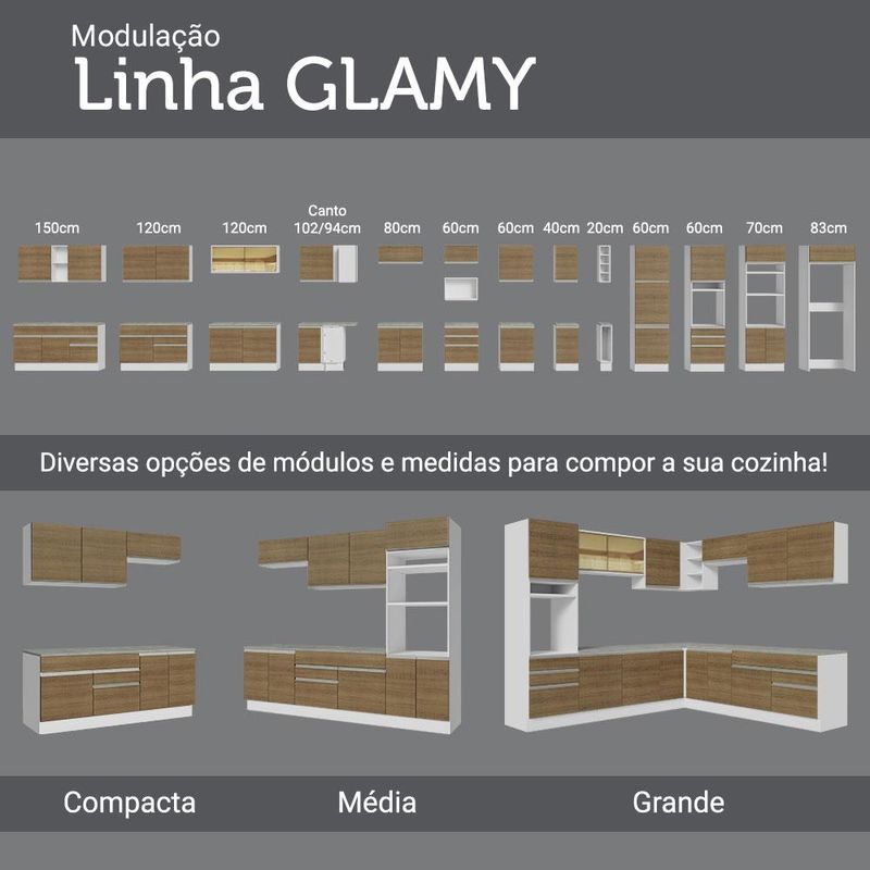Balcão de Pia Madesa Glamy 120 cm 2 Portas (Com Tampo) - Branco/Rustic REF: 510502_Sicredi