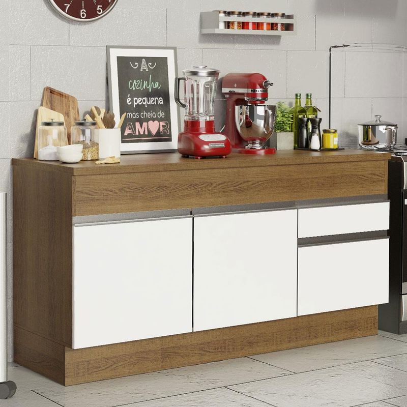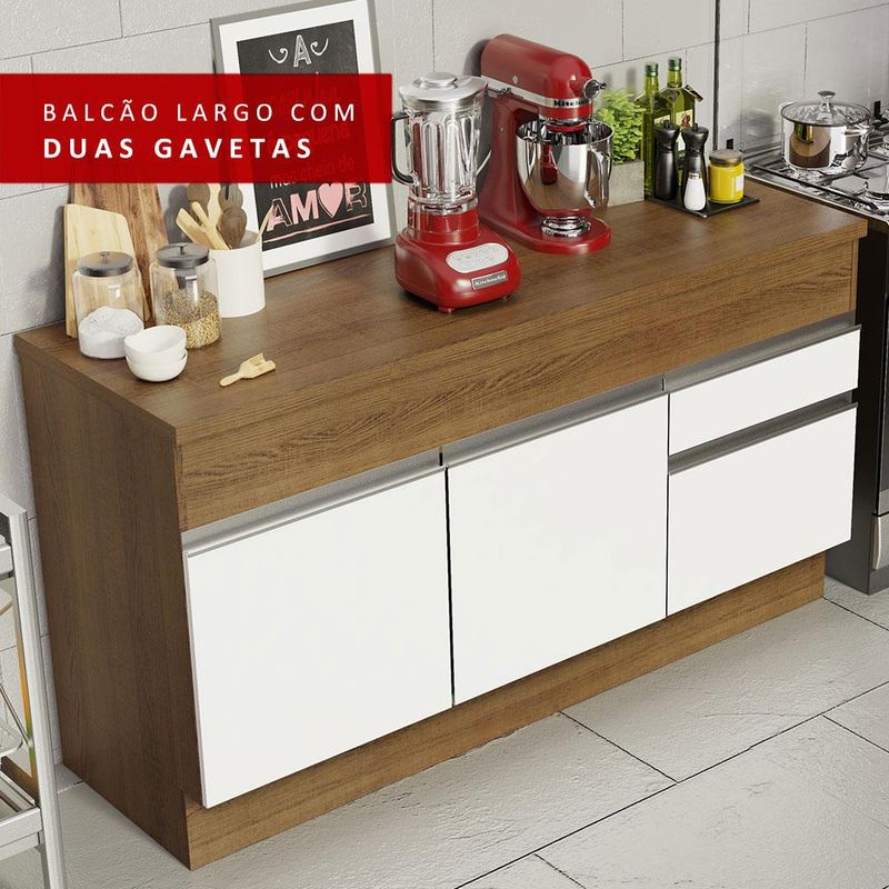 Balcão de Pia Madesa Glamy 150 cm 2 Portas e 2 Gavetas (Com Tampo) - Rustic/Branco REF: 510516_Sicredi
