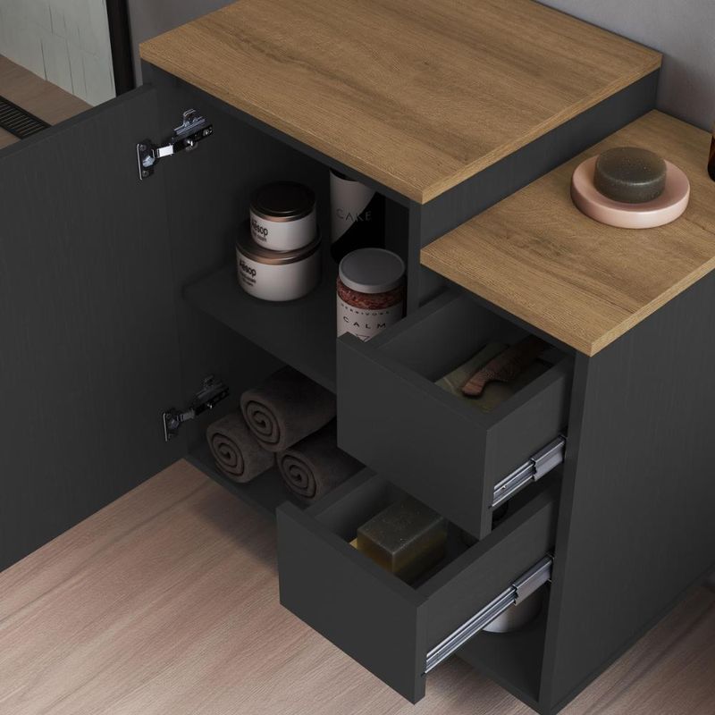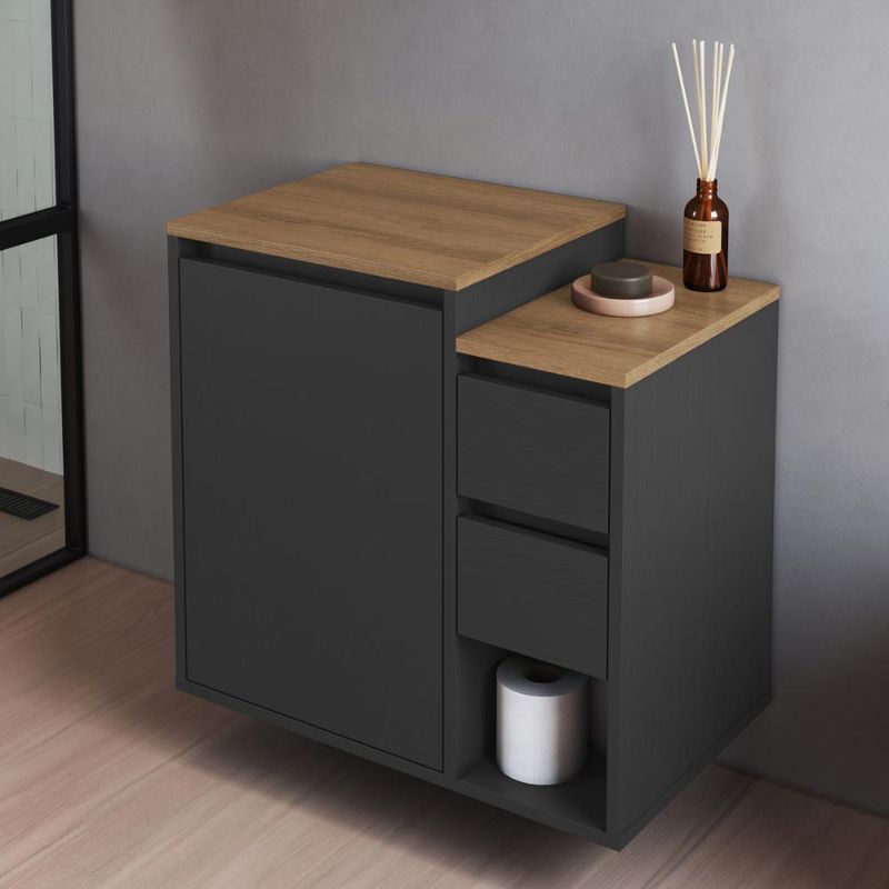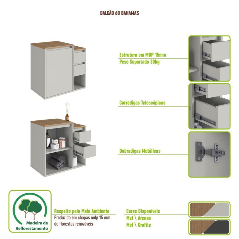 Casa e DecoraçãoMóveisBalcão e GabineteBalcão Gabinete de Banheiro Suspenso 60 Bahamas com 1 Porta e 2 Gavetas Grafite