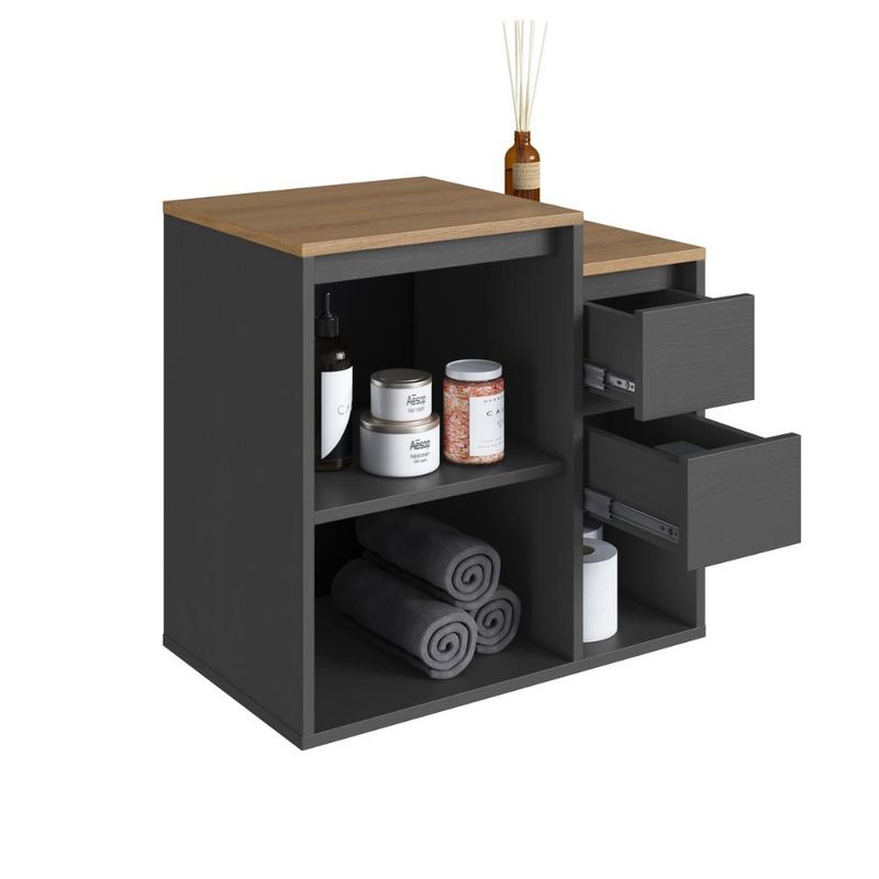 Balcão Gabinete de Banheiro Suspenso 60 Bahamas com 1 Porta e 2 Gavetas Grafite REF: 7899766517975