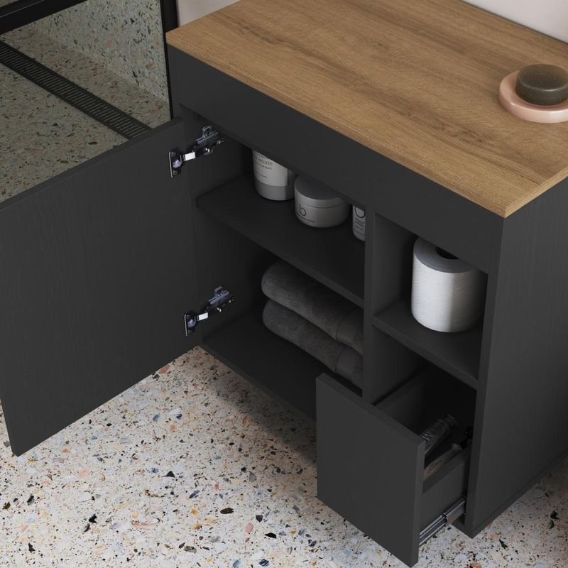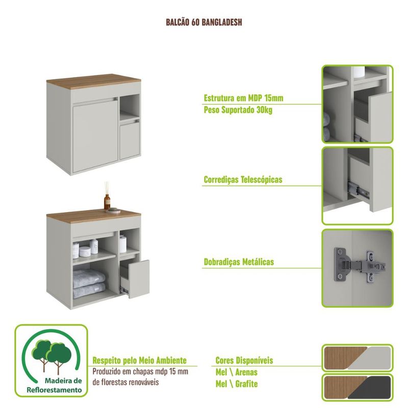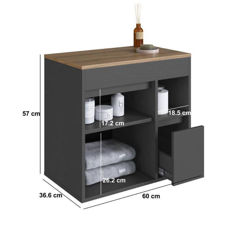 Casa e DecoraçãoMóveisBalcão e GabineteBalcão Gabinete de Banheiro Suspenso 60 Bangladesh com 1 Porta e 1 Gaveta Grafite