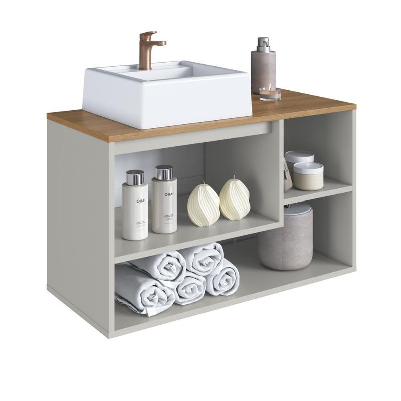 Casa e DecoraçãoMóveisBalcão e GabineteBalcão Gabinete de Banheiro Suspenso 80 Barcelona 1 Porta e Nichos Arenas com Cuba Branca