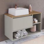 Balcão Gabinete de Banheiro Suspenso 80 Barcelona 1 Porta e Nichos Arenas com Cuba Branca REF: 7899766518064