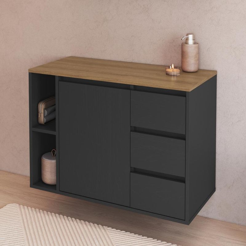 Casa e DecoraçãoMóveisBalcão e GabineteBalcão Gabinete de Banheiro Suspenso 80 Belagavi 1 Porta 3 Gavetas e Nichos Grafite