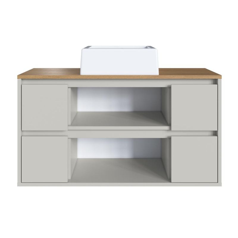 Balcão Gabinete de Banheiro Suspenso 90 Berlim 2 Portas e 4 Gavetas Arenas com Cuba Branca REF: 7899766518187