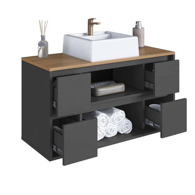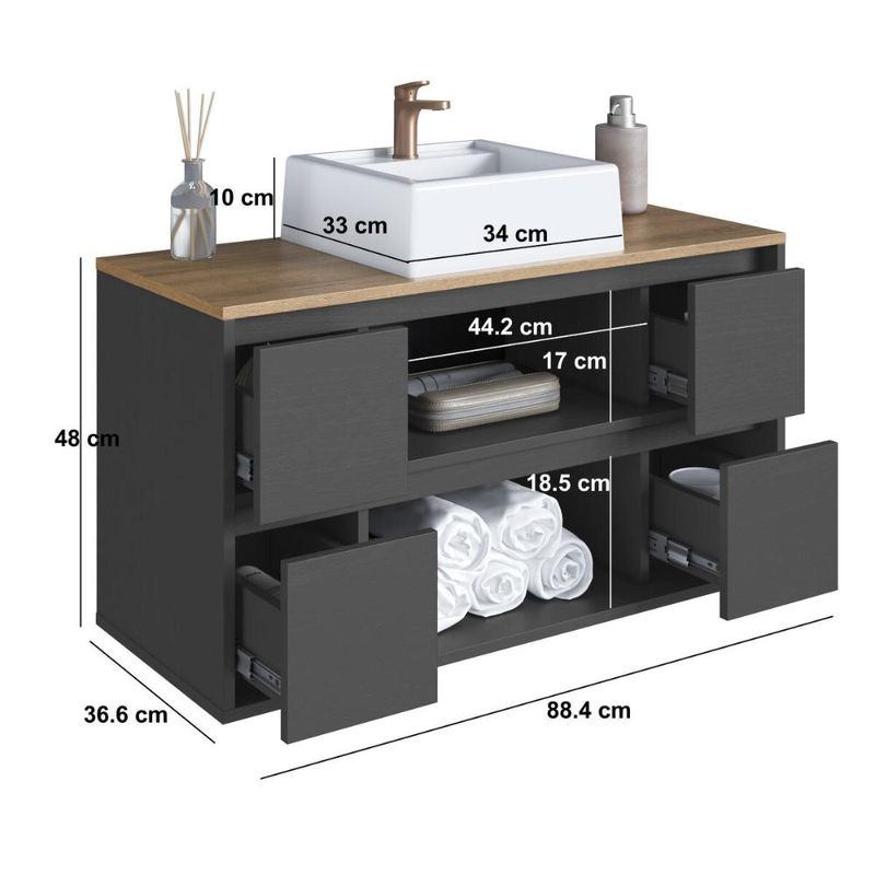 Casa e DecoraçãoMóveisBalcão e GabineteBalcão Gabinete de Banheiro Suspenso 90 Berlim 2 Portas e 4 Gavetas Grafite com Cuba Branca