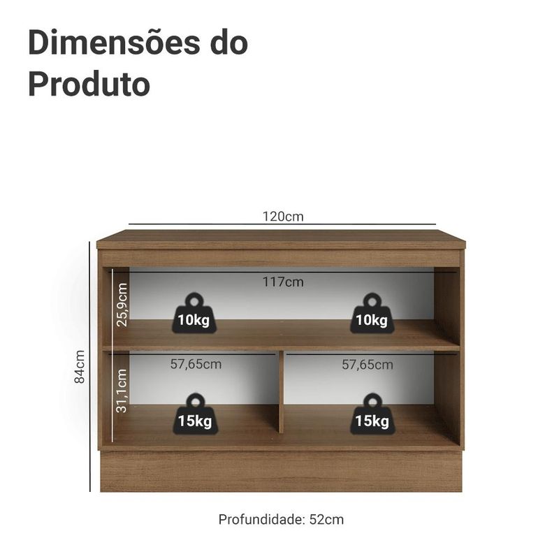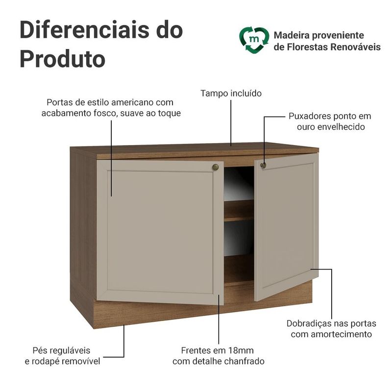 Casa e DecoraçãoMóveisBalcão e GabineteBalcão Gabinete de Pia 120 cm (Com Tampo) Rustic/Crema Vik Madesa