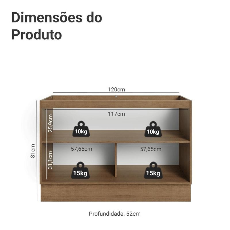 Casa e DecoraçãoMóveisBalcão e GabineteBalcão Gabinete de Pia 120 cm (Sem Tampo) Rustic/Crema Vik Madesa
