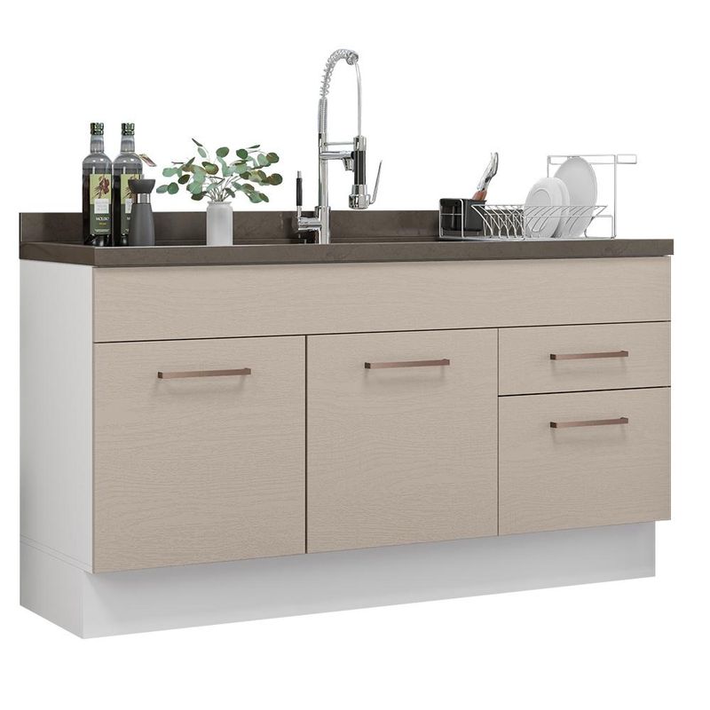 Casa e DecoraçãoMóveisCozinhasBalcão Gabinete de Pia 150 cm 2 Portas e 2 Gavetas (Sem Tampo e Pia) Branco/Crema Agata Madesa