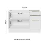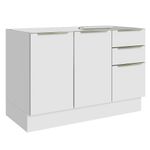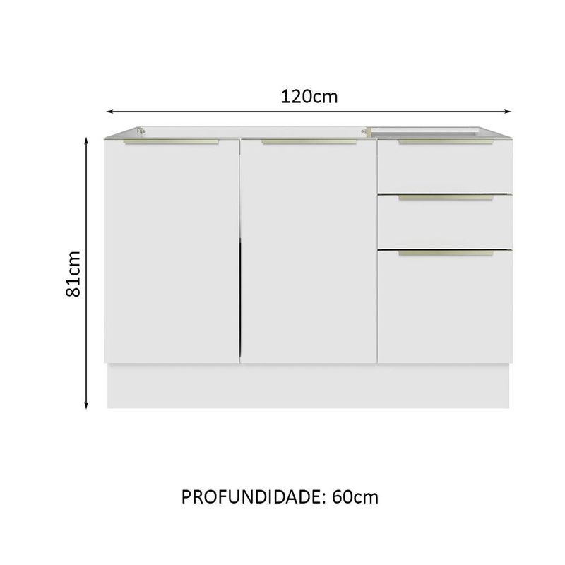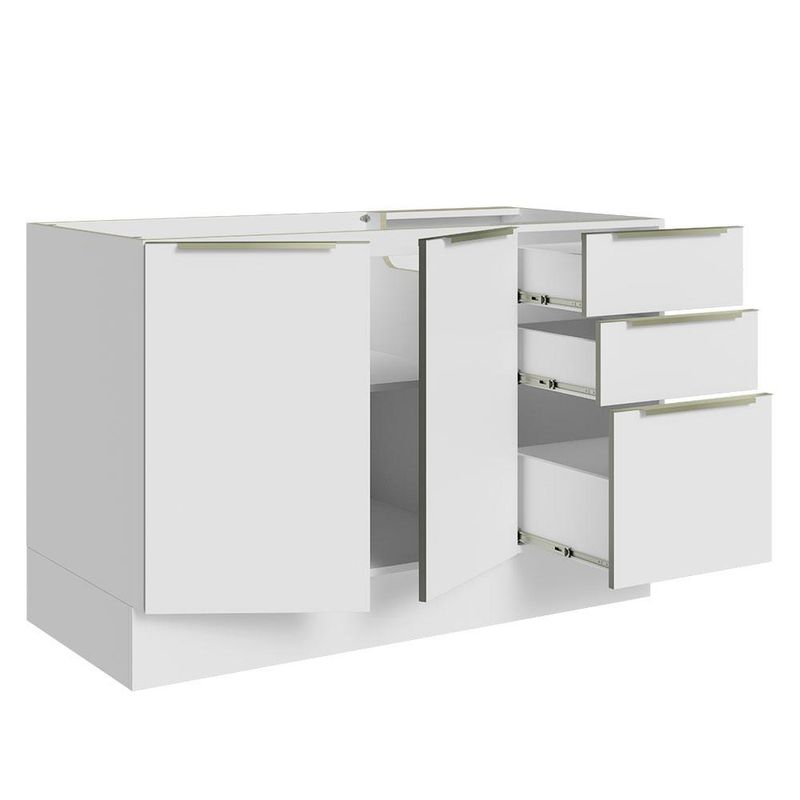 Balcão Gabinete de Pia Madesa Lux 120 cm 2 Portas 3 Gavetas (Sem Tampo) - Branco/Branco Veludo REF: 510623_Sicredi