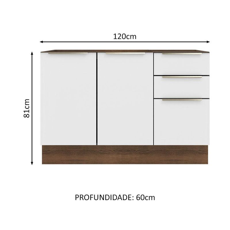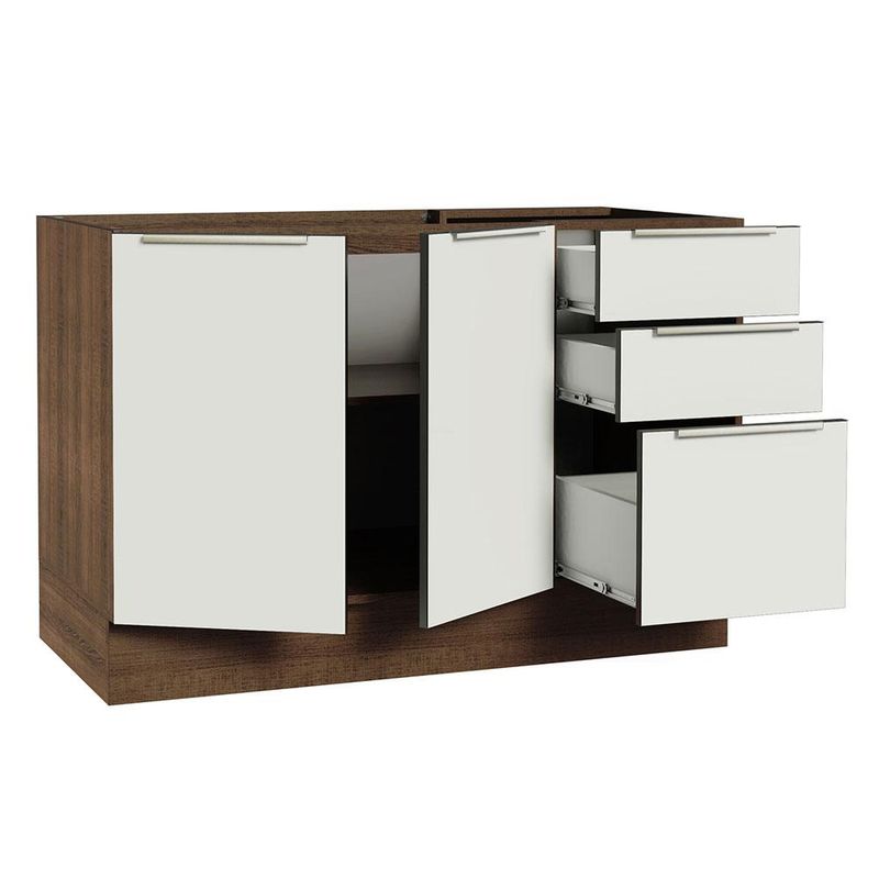 Balcão Gabinete de Pia Madesa Lux 120 cm 2 Portas 3 Gavetas (Sem Tampo) - Rustic/Branco Veludo REF: 510624_Sicredi