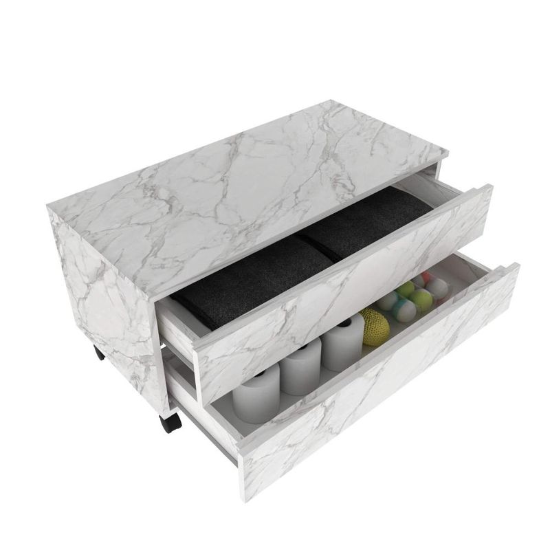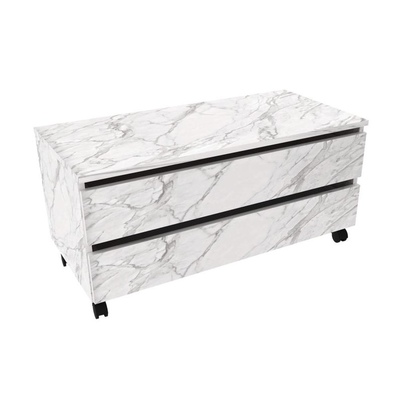 Casa e DecoraçãoMóveisBalcão e GabineteBalcão Gabinete para Banheiro 80cm com Rodízio e 2 Gavetas BN3603 Mármore Branco Sem Cuba