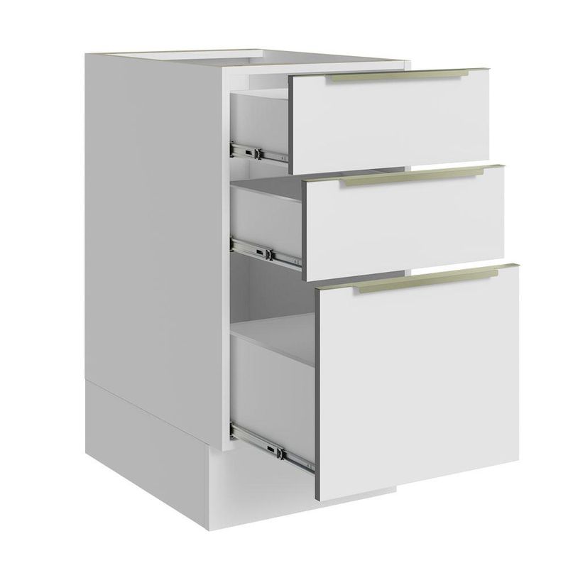 Balcão Madesa Lux 40 cm 3 Gavetas (Sem Tampo) - Branco/Branco Veludo REF: 510752_Sicredi