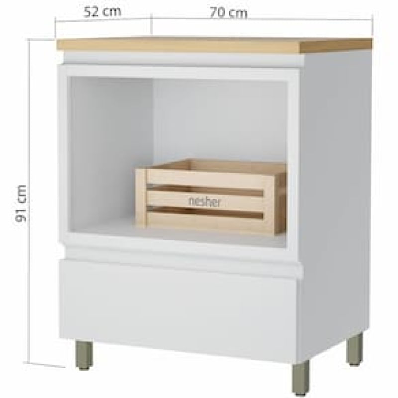Casa e DecoraçãoMóveisBalcão e GabineteBalcão Nesher Rainha em MDF 15mm com Nicho para Micro-ondas, 1 Gaveta e 1 Prateleira - 70cm de largura