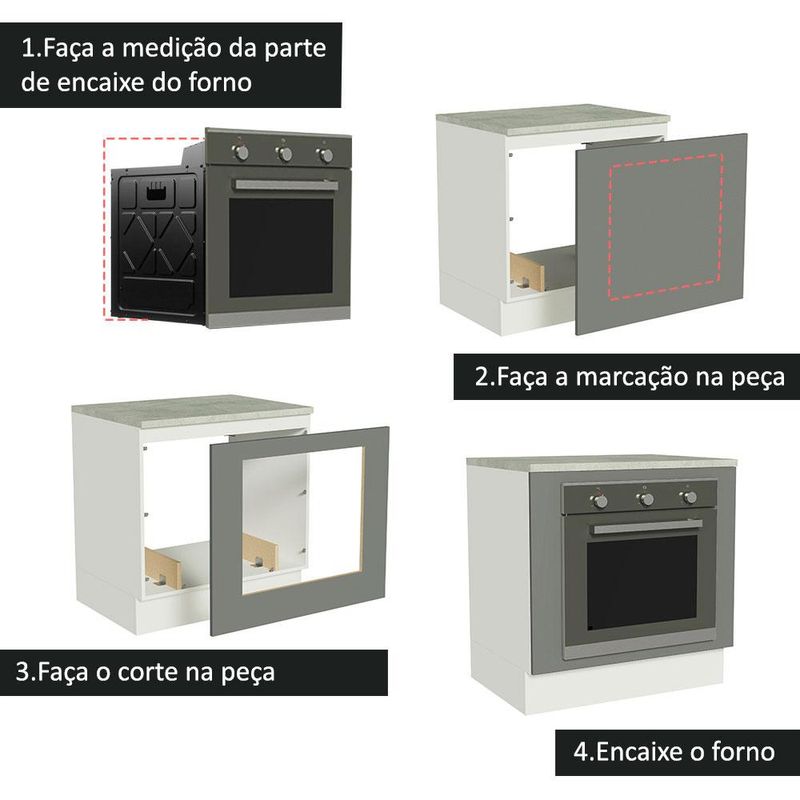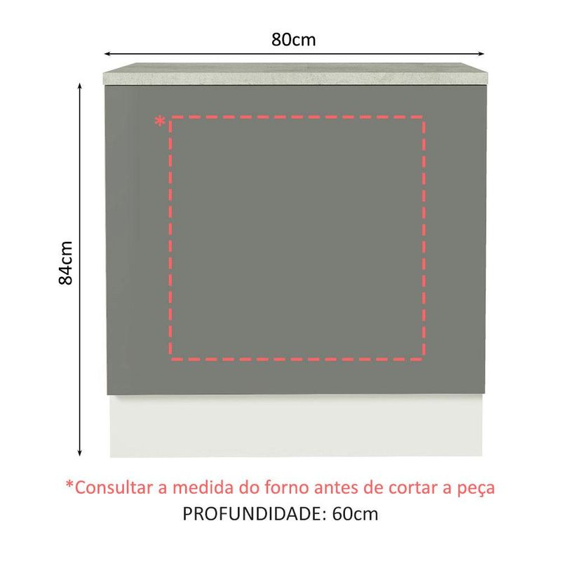 Balcão para Forno de Embutir 80 x 60 cm Com Tampo Branco/Cinza Agata Madesa REF: 515437_Sicredi