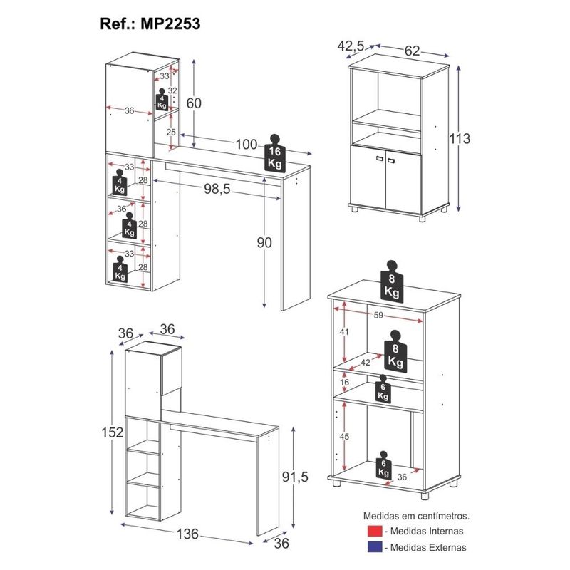 Casa e DecoraçãoMóveisArmário de CozinhaBalcão para Forno e Micro-ondas 2 Portas e Bancada com Armário Multimóveis MP2253
