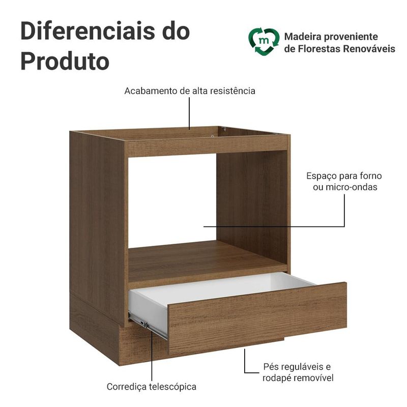 Casa e DecoraçãoMóveisBalcão e GabineteBalcão para Forno/Micro-ondas 70 cm 1 Gaveta (Sem Tampo) Rustic Madesa
