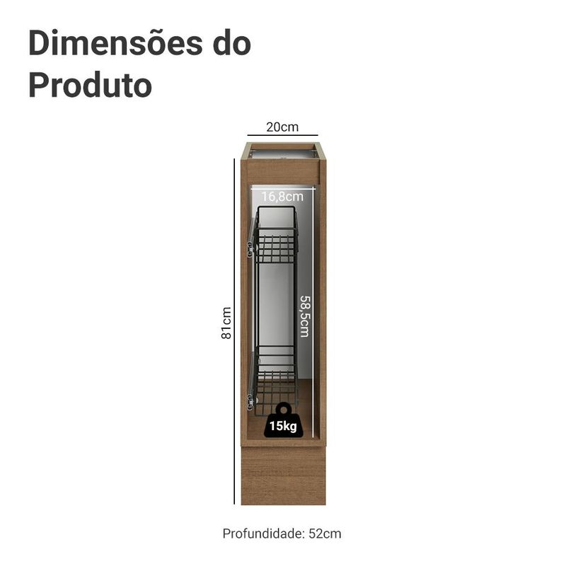 Balcão Porta-Temperos 20 cm 1 Porta (Sem Tampo) Rustic/Verde Vik Madesa REF: 7891760111715
