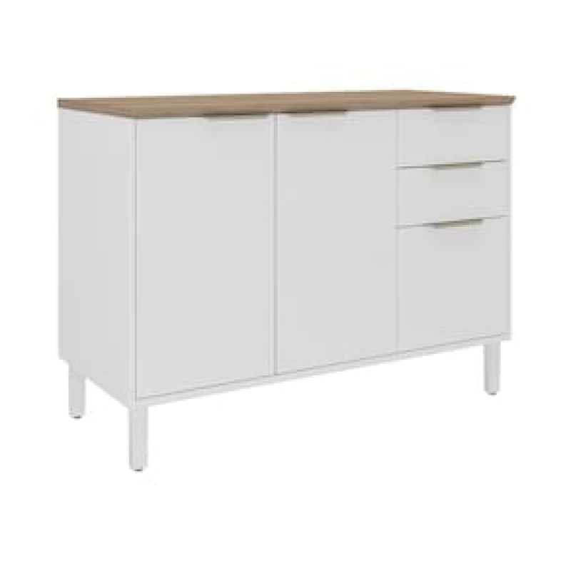 Casa e DecoraçãoMóveisBalcão e GabineteBalcão Triplo Itatiaia Renova com 3 Portas, 2 Gavetas, 1 Prateleira e 120cm largura - Branco Neve