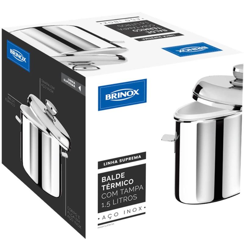 Balde Térmico para Gelo Com Tampa Brinox 1,5 Litros Inox REF: 7896502856237