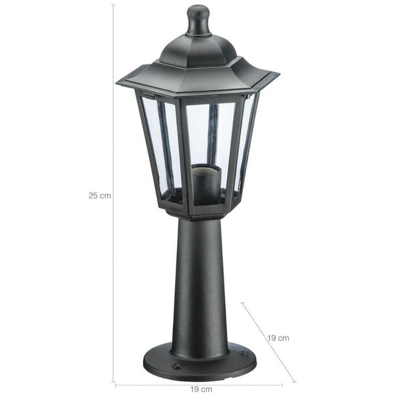 Balizador Mini Poste 44cm Preto Luminária Bivolt Grega Cristal Lente Transparente REF: 7898505470861