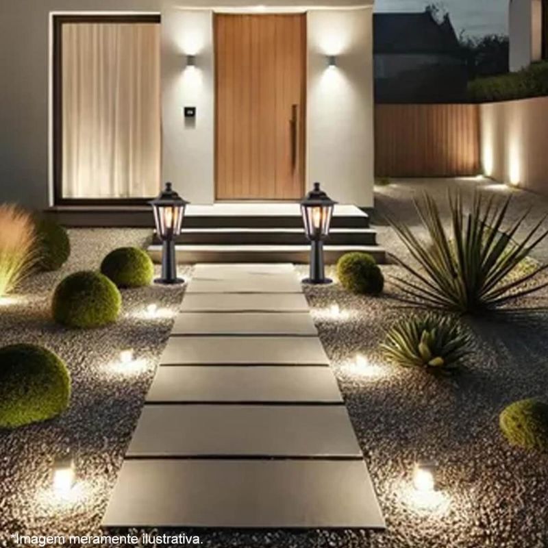 Casa e DecoraçãoDecoraçãoIluminaçãoBalizador Mini Poste 44cm Preto Luminária Bivolt Grega Cristal Lente Transparente