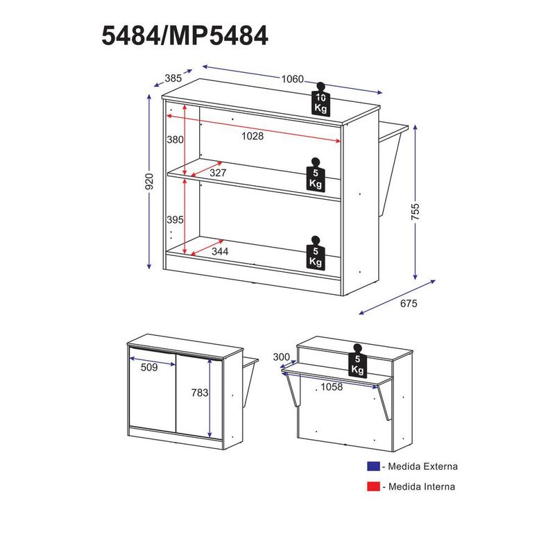 Casa e DecoraçãoMóveisBancadasBancada Balcão/Mesa Cozinha Multimóveis 5484 Branca