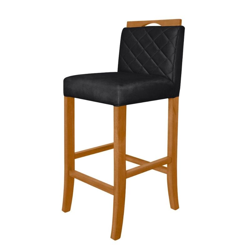Casa e DecoraçãoMóveisCadeiraBanqueta Alta para Cozinha de Madeira Maciça Estofada com Encosto Multimóveis CR15018