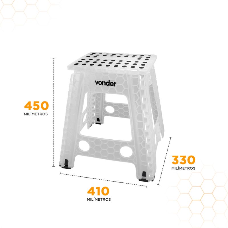 Banqueta Plástica Dobrável 45cm Branca + Lanterna Bateria Recarregável Vonder REF: 882131_Sicredi