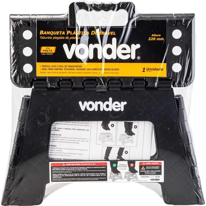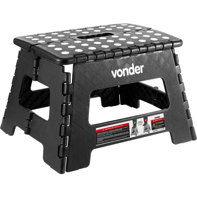Banqueta plástica dobrável preta altura 220 mm VONDER REF: 7893946688714