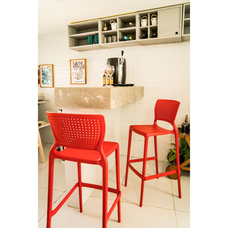 Banqueta Safira Alta Bar Vermelha em Polipropileno e Fibra de Vidro Tramontina 92138040 REF: 7898631069090