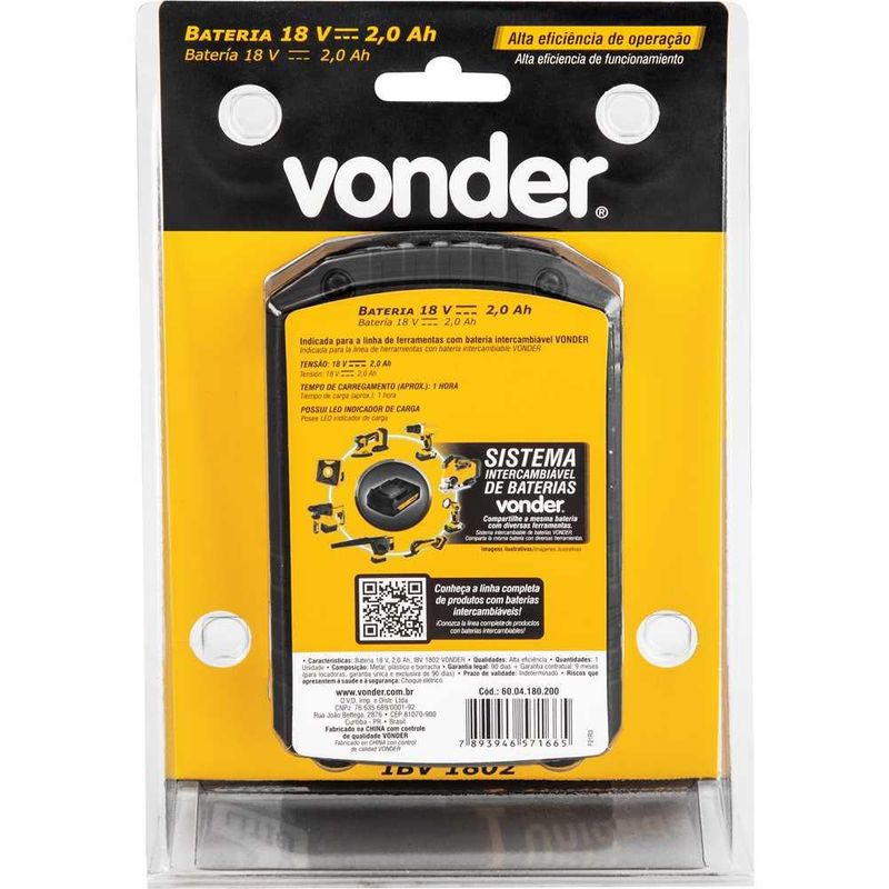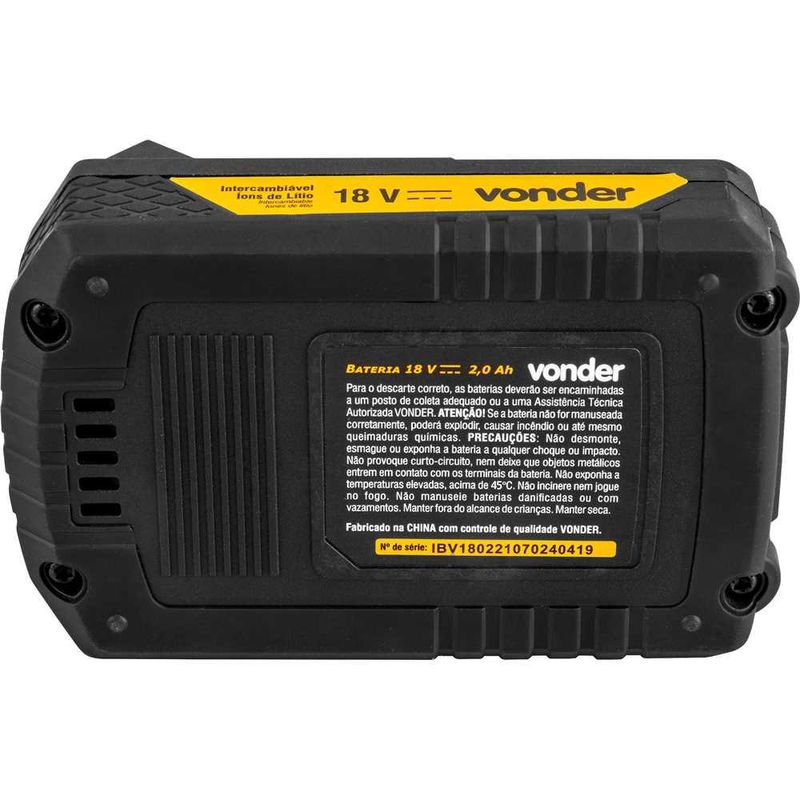 Bateria 180 V íons de lítio linha intercambiável 20 Ah IBV 1802 VONDER REF: 7893946571665
