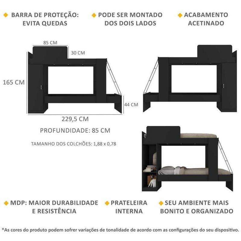 Casa e DecoraçãoMóveisCamaBeliche com Colchão Incluso 1 Porta Havana Multimóveis Preto