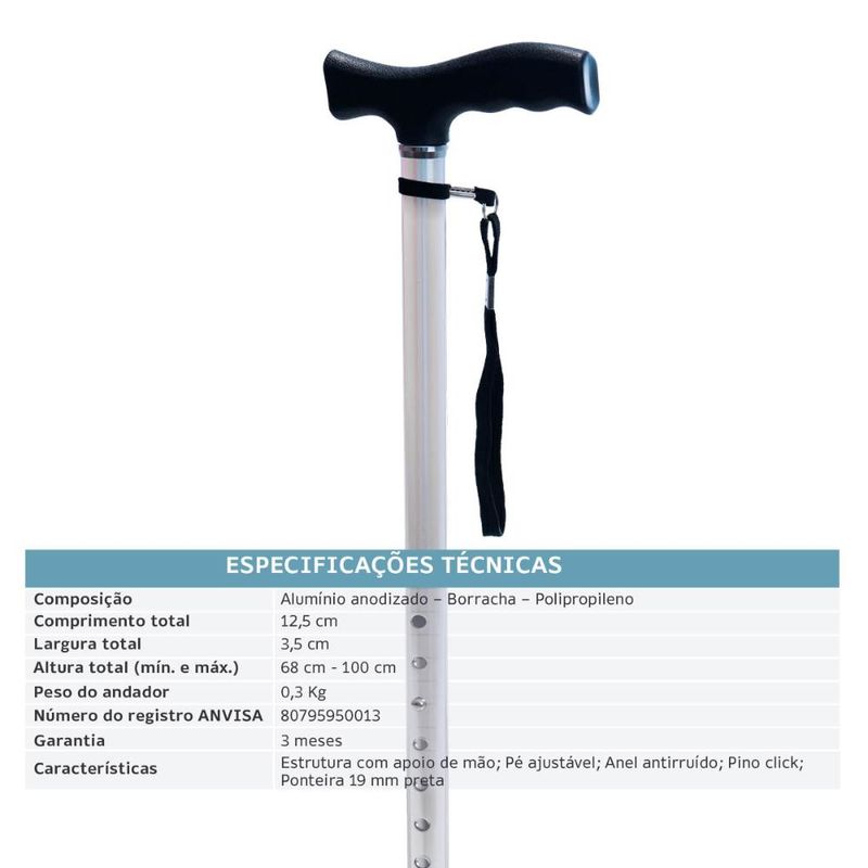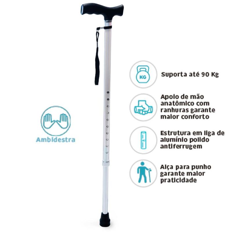 Bengala Alumínio Bastão Tipo T D8 Dellamed REF: 550133_Sicredi