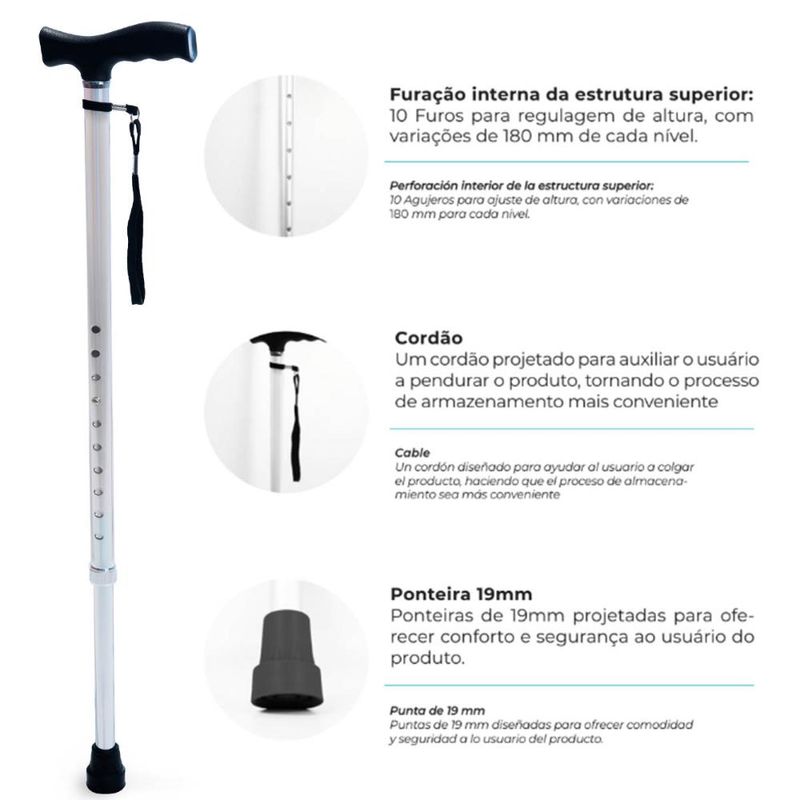 Beleza e SaúdeSaúdeEquipamentos MédicosBengala Alumínio Bastão Tipo T D8 Dellamed