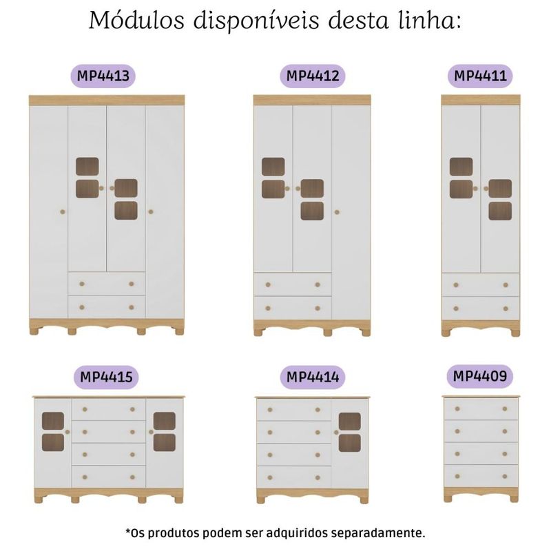 Berço 3 em 1 com Colchão Incluso e Cômoda 1 Porta 4 Gavetas Luna Multimóveis MP4754 REF: 7899390843464