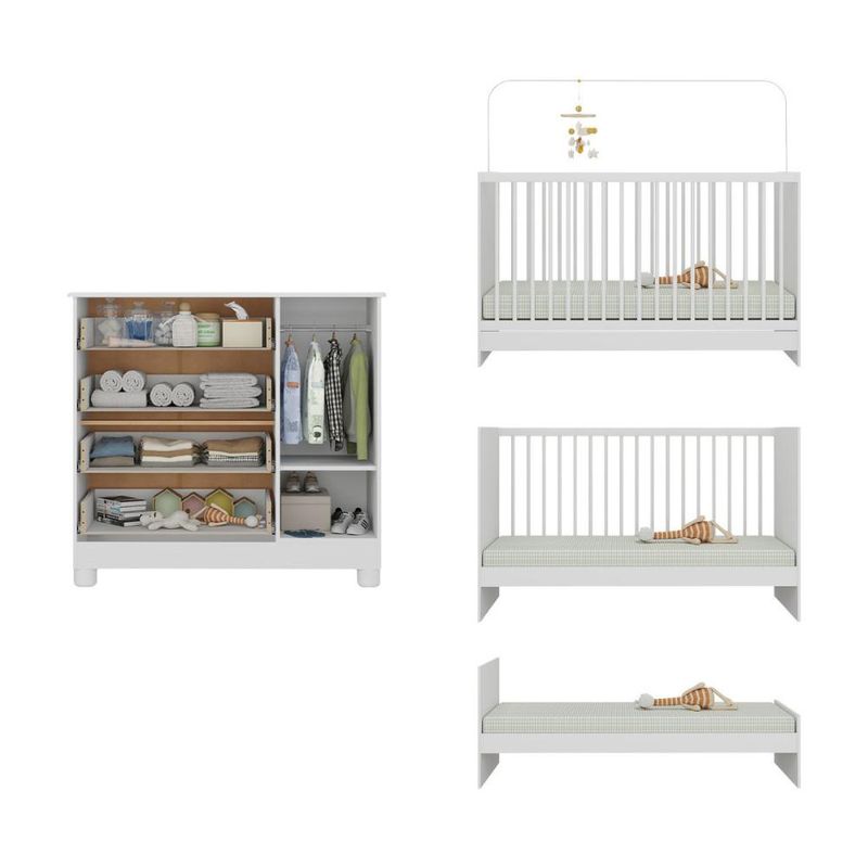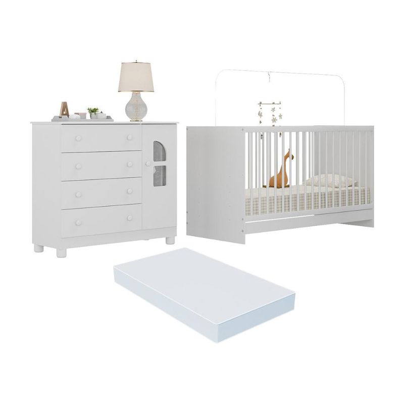 Casa e DecoraçãoMóveisBerço e ColchãoBerço 3 em 1 com Colchão Incluso e Cômoda 1 Porta 4 Gavetas Nina Multimóveis MP4768