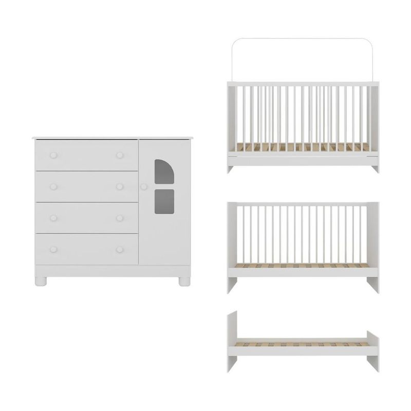 Berço 3 em 1 com Colchão Incluso e Cômoda 1 Porta 4 Gavetas Nina Multimóveis MP4768 REF: 7899390843655