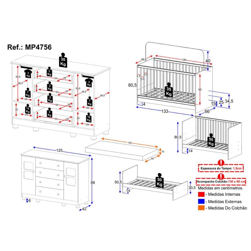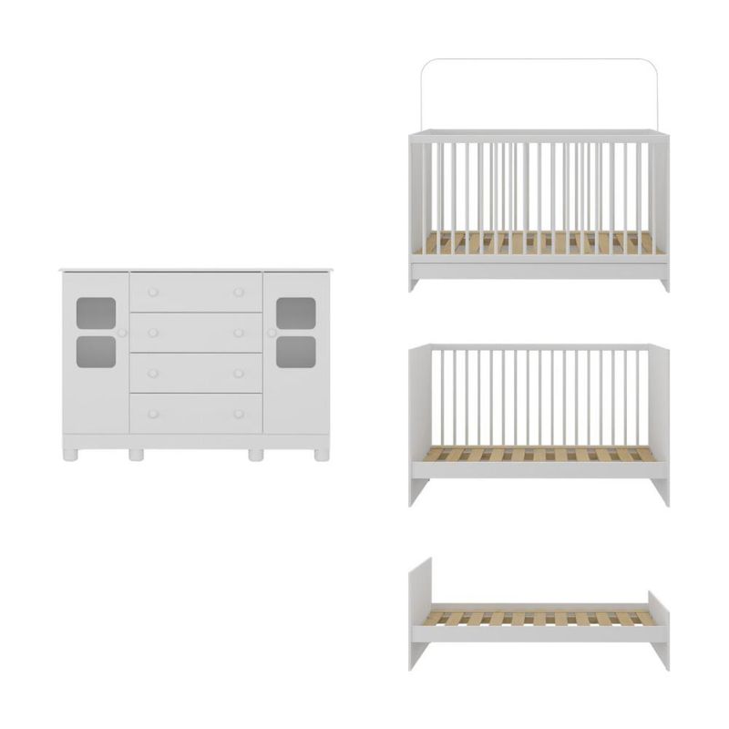 Berço 3 em 1 com Colchão Incluso e Cômoda 2 Portas 4 Gavetas Sol Multimóveis MP4756 REF: 7899390843471
