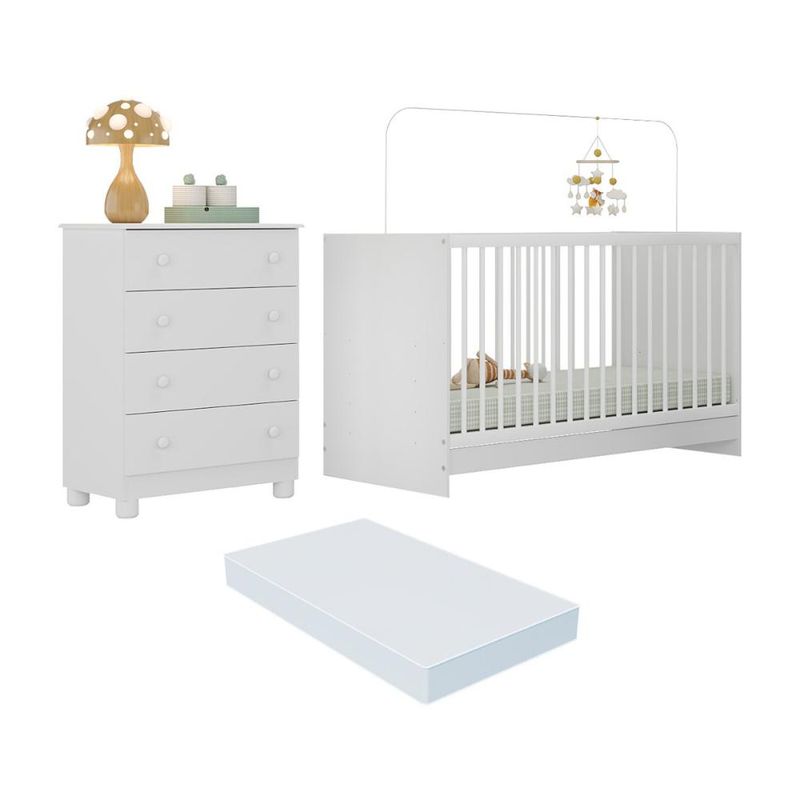 Casa e DecoraçãoMóveisBerço e ColchãoBerço 3 em 1 com Colchão Incluso e Cômoda 4 Gavetas Sol Multimóveis MP4776