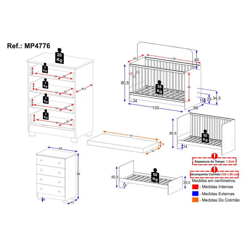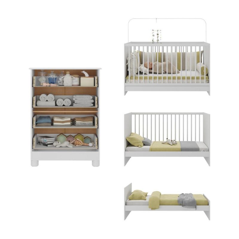 Berço 3 em 1 com Colchão Incluso e Cômoda 4 Gavetas Sol Multimóveis MP4776 REF: 7899390842627