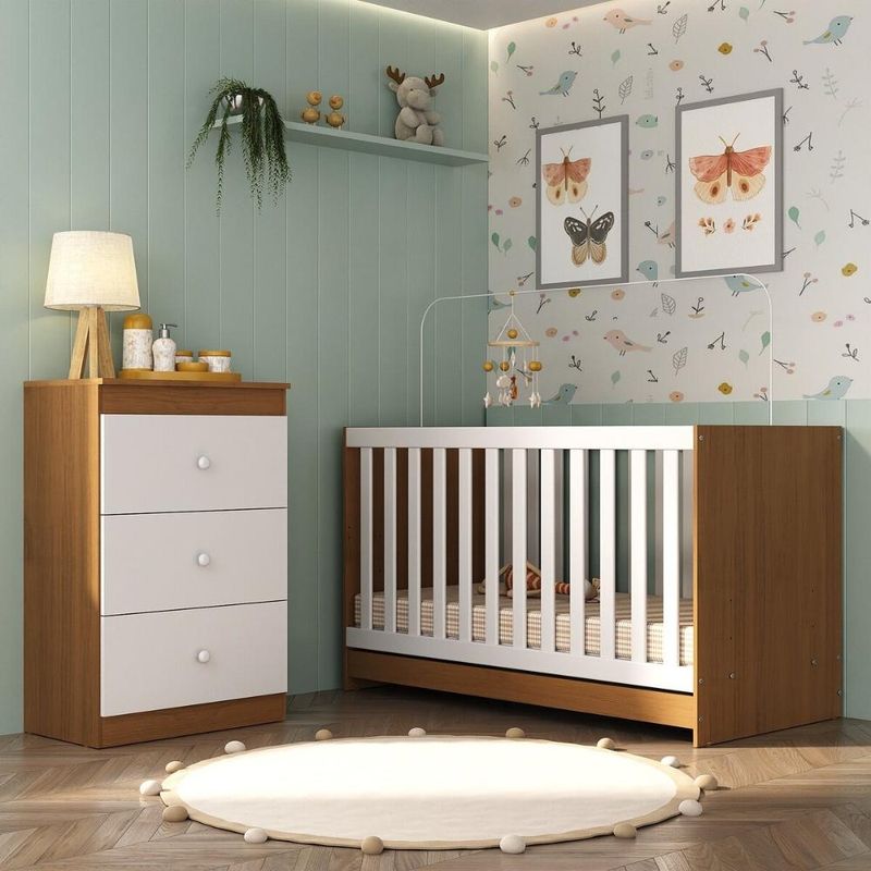 Berço 3 em 1 com Cômoda 3 Gavetas e Colchão Incluso Doce de Leite Multimóveis MP4240 REF: 568668_Sicredi