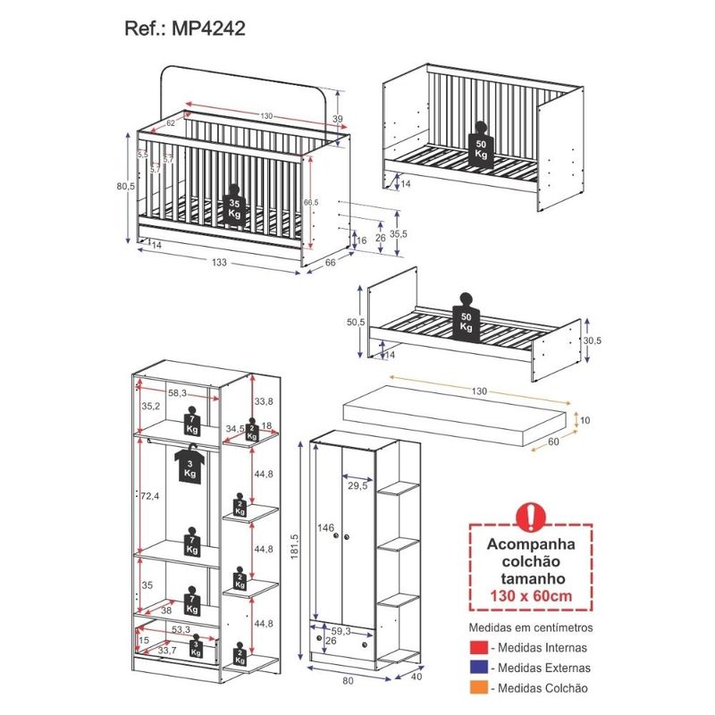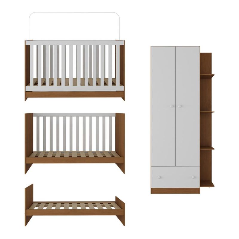 Casa e DecoraçãoMóveisBerço e ColchãoBerço 3 em 1 com Guarda-Roupas 2 Portas 1 Gaveta e Colchão Incluso Doce de Leite Multimóveis MP4242