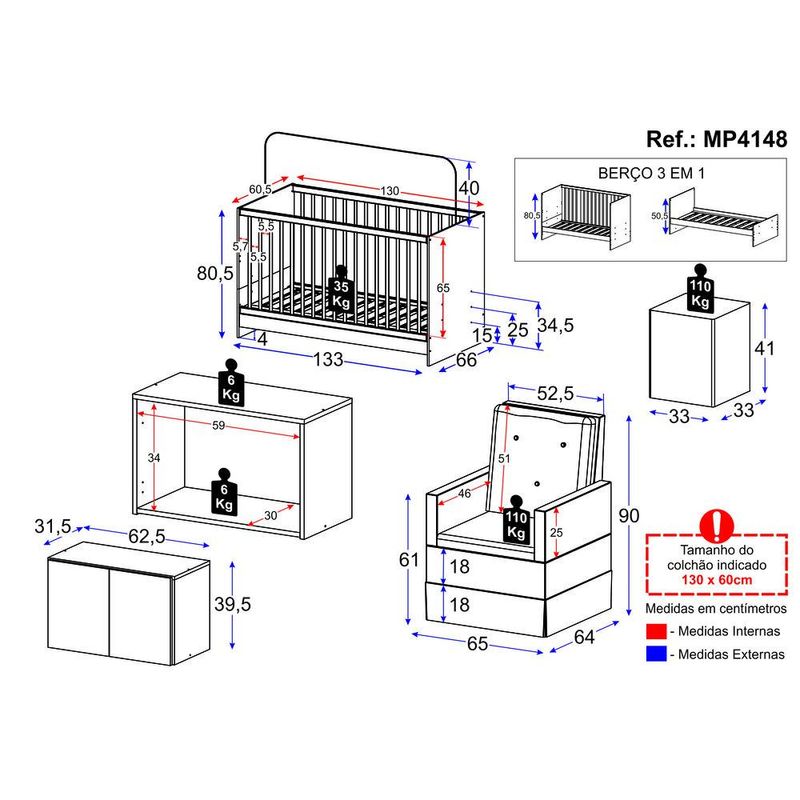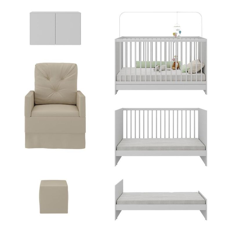 Berço 3 em 1 com Poltrona Amamentação Puff e Armário Aéreo 2 Portas Multimóveis MP4148 REF: 766968_Sicredi