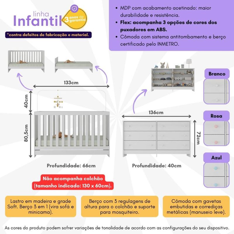 Casa e DecoraçãoMóveisBerço e ColchãoBerço 3 em 1 para Colchão 130 x 60cm com Cômoda Doce de Leite Multimóveis MP4297