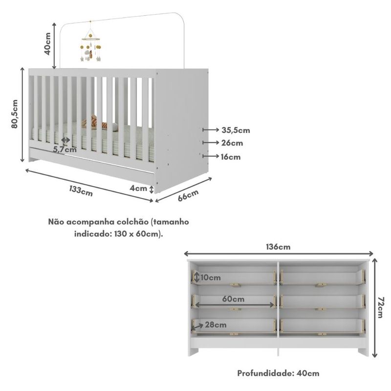 Berço 3 em 1 para Colchão 130 x 60cm com Cômoda Doce de Leite Multimóveis MP4297 REF: 770114_Sicredi