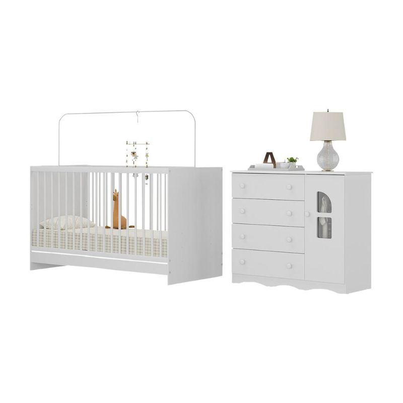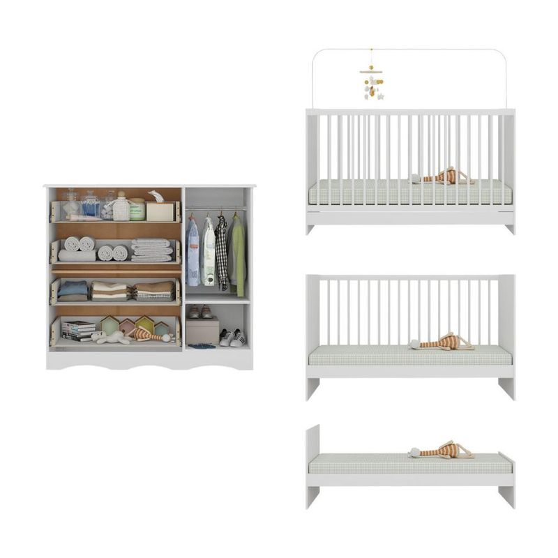 Casa e DecoraçãoMóveisBerço e ColchãoBerço 3 em 1 para Colchão 130x60cm com Cômoda 1 Porta 4 Gavetas Liz Multimóveis MP4761