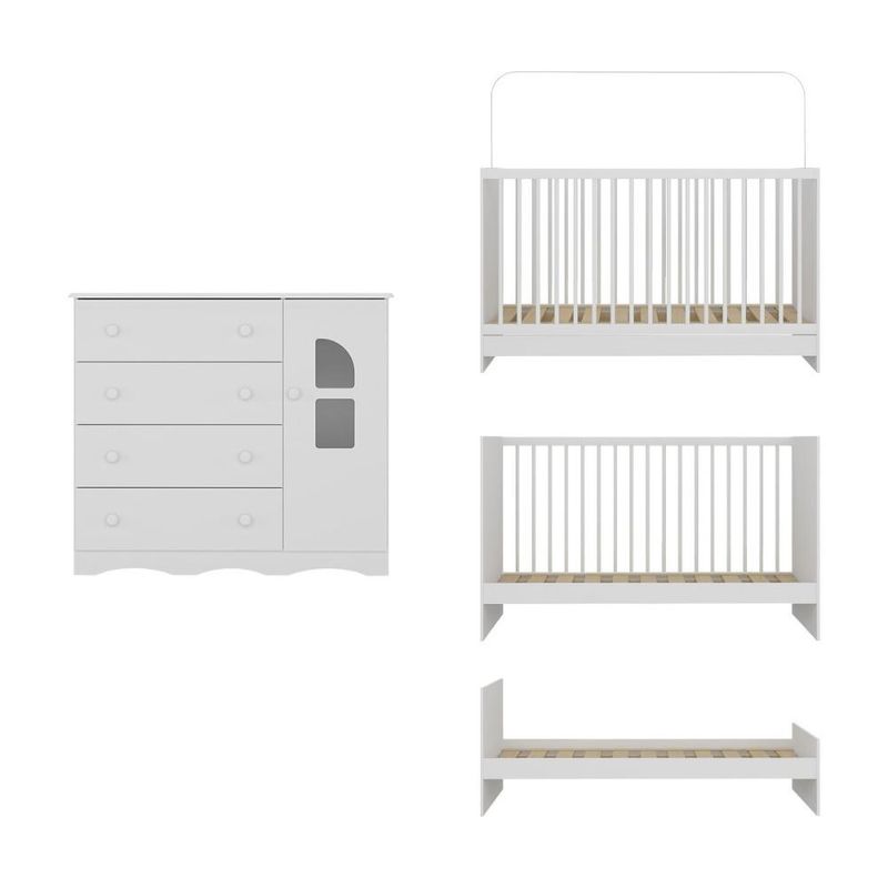 Berço 3 em 1 para Colchão 130x60cm com Cômoda 1 Porta 4 Gavetas Liz Multimóveis MP4761 REF: 7899390843549