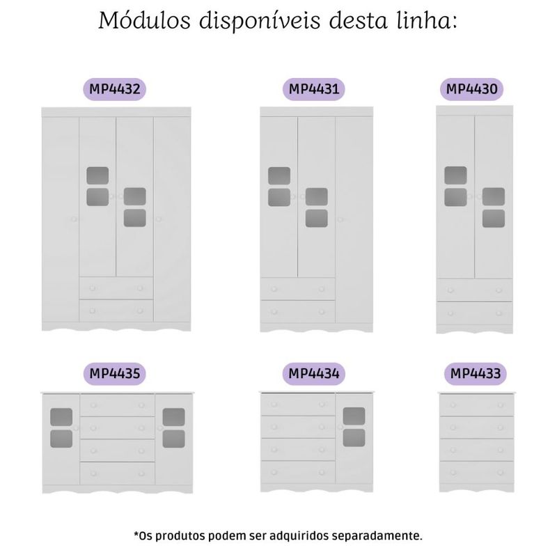 Casa e DecoraçãoMóveisBerço e ColchãoBerço 3 em 1 para Colchão 130x60cm com Cômoda 2 Portas 4 Gavetas Serena Multimóveis MP4749