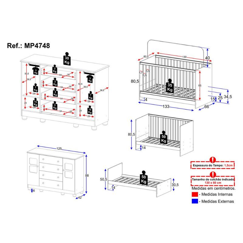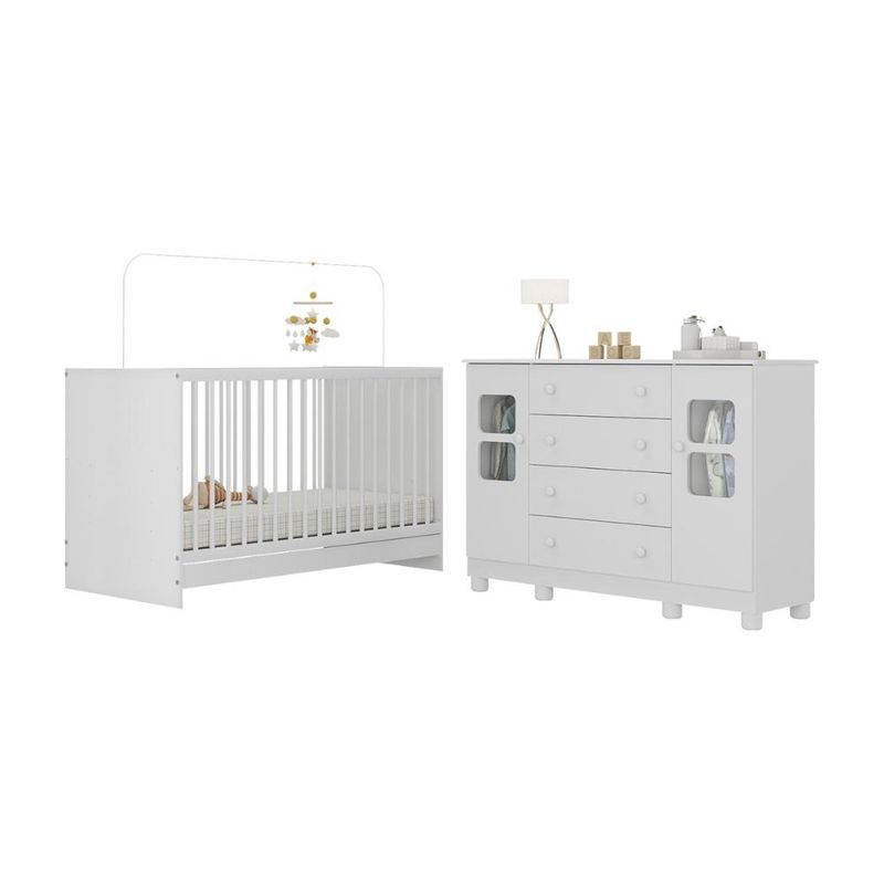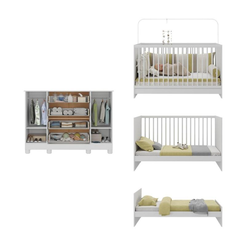Casa e DecoraçãoMóveisBerço e ColchãoBerço 3 em 1 para Colchão 130x60cm com Cômoda 2 Portas 4 Gavetas Sol Multimóveis MP4748